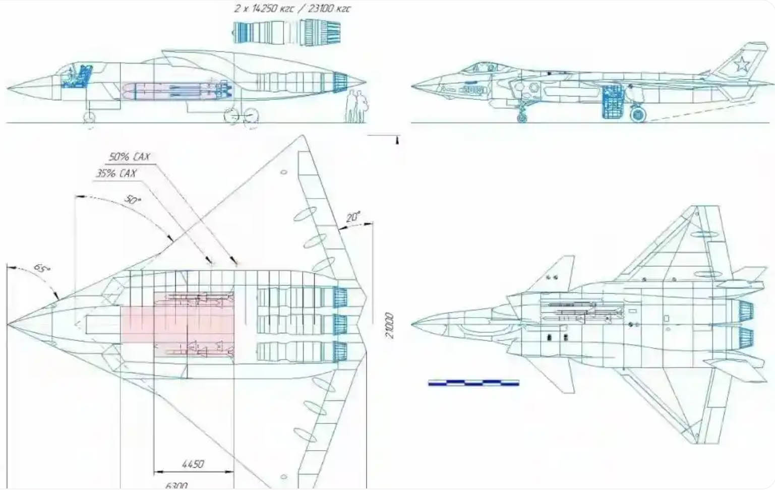 • Firepower: Within its 62-ton airframe, it can accommodate a nearly 7-meter-long central module and modular weapon bays on both sides exceeding 4 meters in length, easily carrying four PL-17 ultra-long-range air-to-air missiles (range 500 km) and four PL-15 medium-range missiles. This configuration doubles the firepower of the F-22's "6+2" configuration, further dwarfing the F-35's stealth capability due to external payloads.